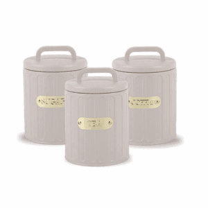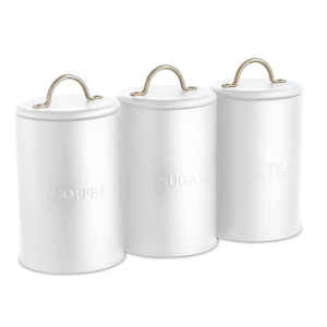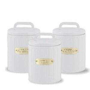 סט תה קפה סוכר – לחיצת ואקום 3 צנצנות זכוכית לבן זהב 900 מ”ל