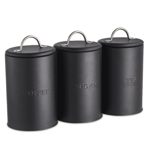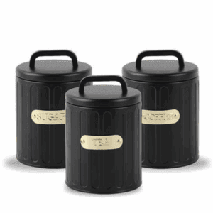 סט תה קפה סוכר – לחיצת ואקום 3 צנצנות זכוכית שחור זהב 900 מ”ל