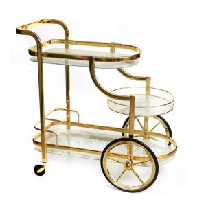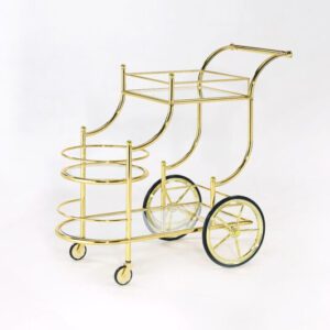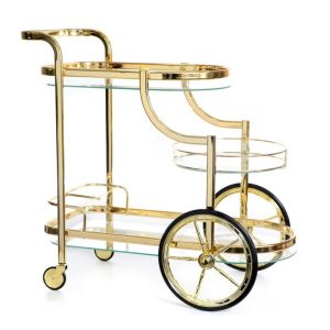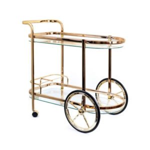 עגלת משקאות זהב גלגל גדול + מדפי זכוכית 76X34