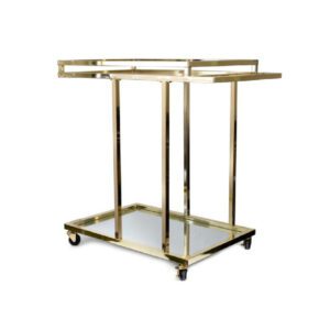 עגלת משקאות מלבנית – זהב מתכת זכוכית 77X48 ס”מ