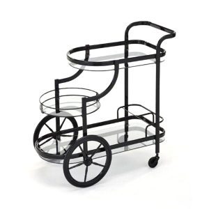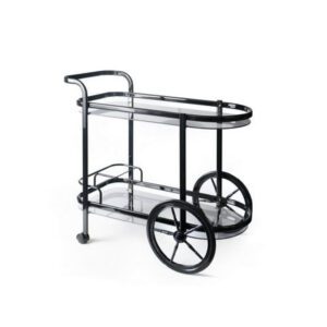 עגלת משקאות שחורה גלגל גדול + מדפי זכוכית 76X34