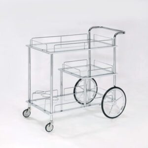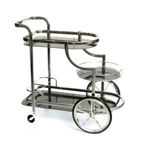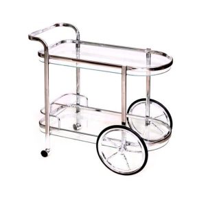 עגלת משקאות ניקל גלגל גדול + מדפי זכוכית 76X34