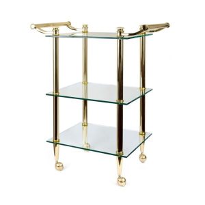 עגלת משקאות – 3 קומות מלבנית מתכת זהב זכוכית