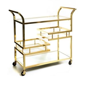 עגלת משקאות מתכת זהב + מדפי זכוכית 78X45