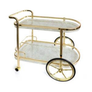 עגלת משקאות זהב עם שיש לבן גלגל גדול + מדפי זכוכית 82X41