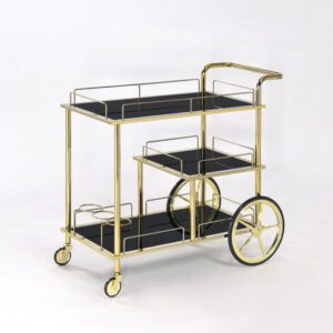 עגלת משקאות מלבנית מתכת זהב שחור זכוכית שחורה 80X40 גובה 83 ס”מ