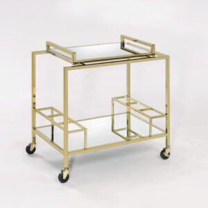 עגלת משקאות מלבנית מתכת עם מגש זהב זכוכית מראה 75X50 גובה 78 ס”מ