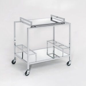 עגלת משקאות מלבנית מתכת עם מגש כסף מראה 75X50 גובה 78 ס”מ