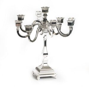 פמוט 9 קנים – בארוק מתכת כסף גובה 37 ס”מ 32/32 ס”מ ציפוי לכה