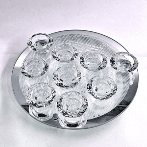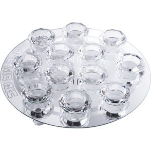 מגש פמוט עגול קריסטל – 9 קנים ‘לכבוד שבת ויום טוב’ סליל כסף 31 ס”מ
