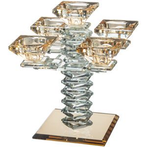 פמוט קריסטל – 5 קנים אמבר תחתית קריסטל מהודר עמוד פרמידה