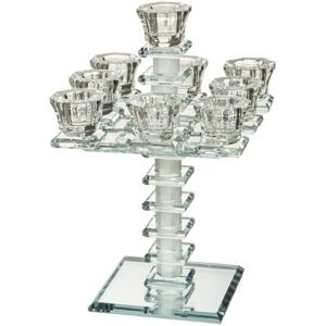 פמוט קריסטל- 9 קנים קריסטל מהודר מדרגות עמוד פרמידה 24 ס”מ