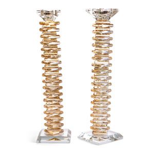זוג פמוט – קריסטל זהב ושקוף קוביות 14.5 ס”מ