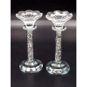 זוג פמוט – קריסטל עגול פרח רסיסי כסף
