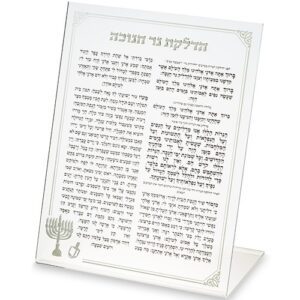חנוכיה אקריליק – גב כסוף + ברכות