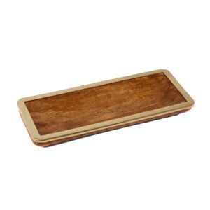 מגש מלבני מעץ מנגו מסגרת זהב 30X12 ס”מ