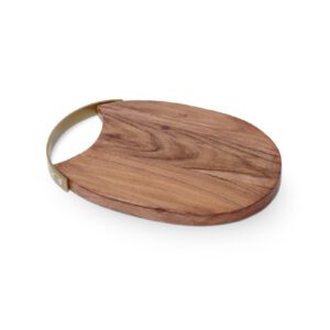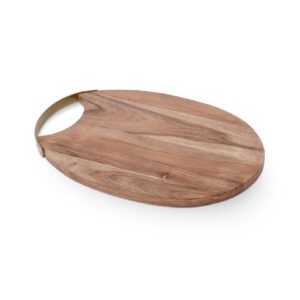 קרש עץ מנגו בוצ’ר אובלי ידיות מתכת זהב – 26X18 ס”מ