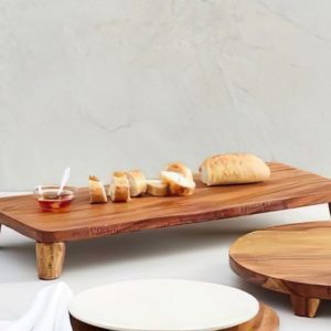 סט הגשה עץ 3 חלקים – בוצ’ר מלבן על רגליים 43 ס”מ + 2 קרשי עץ מלבן 29 ס”מ