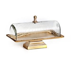 בית עוגה – מלבני על רגל מתכת זהב פעמון זכוכית שקוף 37X17X24 ס”מ