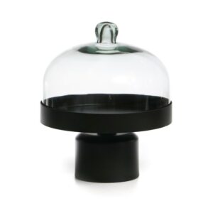 בית עוגה – עגול מתכת שחורה על רגל עבה פעמון זכוכית 24X20.7 ס”מ