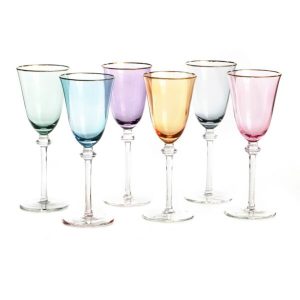 סט 6 גביעי יין זכוכית – 6 צבעים צבעוניים פס זהב 250 מ”ל