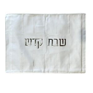 מפה לכיסוי חלה – ‘שבת קודש’ לבן כיתוב כסף 46X58 ס”מ