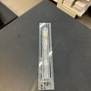 בית מזוזה – קריסטל ‘האש שלי’ שקוף כיתוב לבן 15 ס”מ