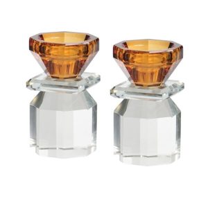 זוג פמוט – קריסטל אמבר בסיס שקוף גובה 10 ס”מ 5.5/5.5 ס”מ