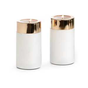 זוג פמוט – בסיס שיש לבן 6\6 גובה 11 ס”מ ראש זהב