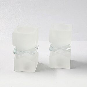 זוג פמוט – קוביה קריסטל פרוזן חלבי 10 ס”מ