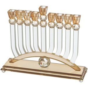 חנוכיה קריסטל – שקוף ענבר זהב 37X5.5 ס”מ ‘BASIC’