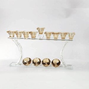 חנוכיה קריסטל – 4 יהלומים אמבר 37X20 ס”מ