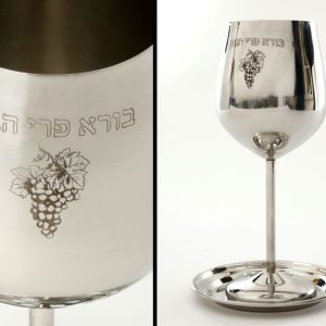 כוס קידוש – נירוסטה כסף חריטה ‘בורא פרי הגפן’