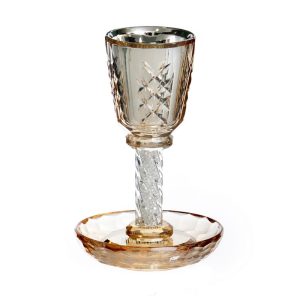 כוס קידוש – זכוכית זהב רגל רסיסי כסף מעויינים