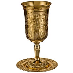 כוס קידוש – גביע אליהו גדול זהב ירושלים 25 ס”מ 700 מ”ל