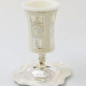 כוס קידוש – אמייל כסף מעוטר קרם על רגל 31393