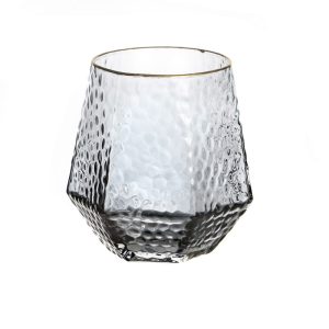 סט 6 כוס שתייה – זכוכית אפורה יהלום פס זהב 300 מ”ל