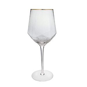 סט 6 כוס יין – שקופה צורת יהלום ופס זהב 570 מ”ל