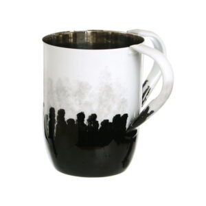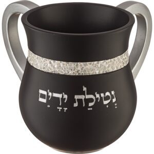 נטלה – מהודרת מפוליריזן 14 ס”מ שחור ‘נטילת ידים’ אבני כיתוב ידיות כסף