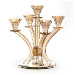 פמוט 5 קנים – קריסטל ענבר זהב 27X24 ס”מ גובה 27 ס”מ קוטר 24 ס”מ