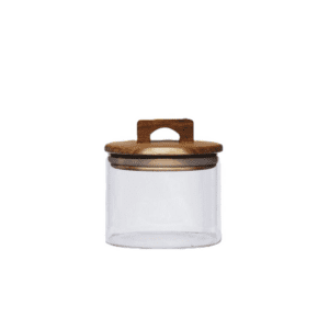 צנצנת אחסון מכסה עץ + ידית 500 מ”ל דגם אגם גובה 11 ס”מ