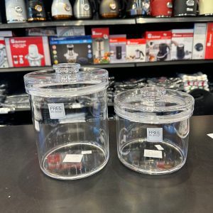 מיכל קופסת אחסון שקוף אקרילית 1.4 ל’ עגול קטן 15 ס”מ גובה 13 ס”מ FREE