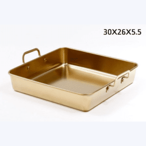 קערת הגשה – תבנית מרובעת 2 ידיות זהב 30X26X5.5 ס”מ