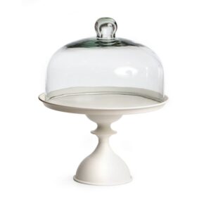 בית עוגה על רגל עגול מתכת לבן מט + פעמון זכוכית 28*22 ס”מ