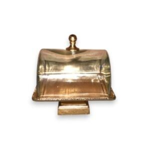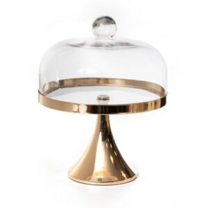 בית עוגה אינגליש מלבני מתכת לבנה + פעמון זכוכית שקוף 17*44