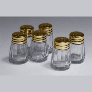 סט 6 מלחיות – זכוכית מכסה מתכת זהב 2.5X2.5X4.5 ס”מ TINE