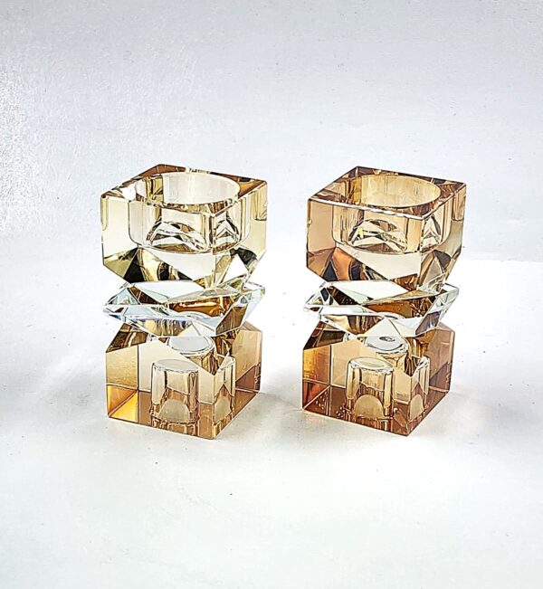 / זוג פמוט – קוביה קריסטל שמפניה זהב 10 ס”מ