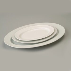 פלטת הגשה אובלית 36 ס״מ פורצלן צ׳כי – שמנת שנהב עיטור פס זהב Thun