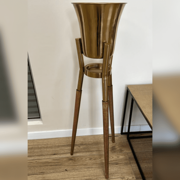 / שמפניירה – מתכת זהב על רגלי עץ 33.5X29.5 גובה 85.5 ס”מ