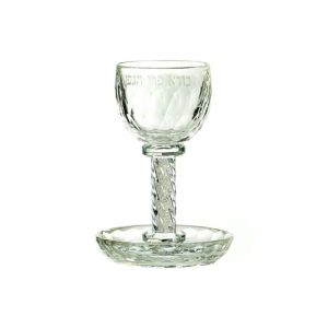 כוס קידוש – זכוכית שקופה רגל רסיסי כסף ‘בורא פרי הגפן’